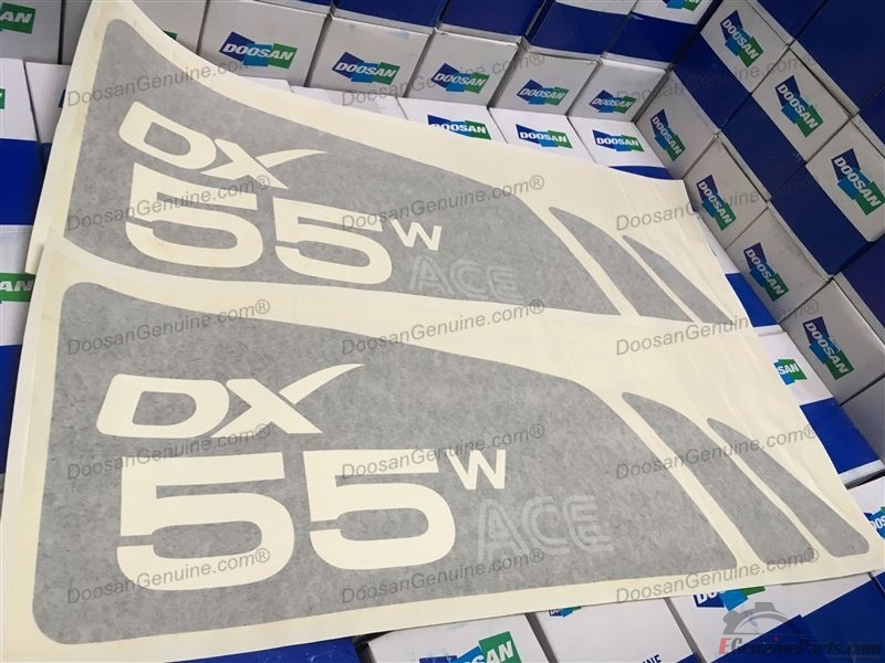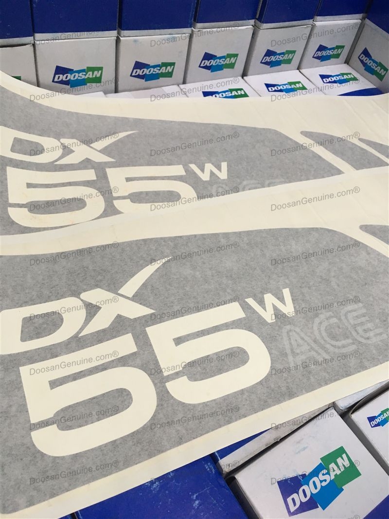 DECAL FOR DECAL - MACHINE NAME DOOSAN DX55W ACE / DX55W ACE PLUS(S/N:6025~) (CEWAM,DI,DOM). 1SET=2ITEMS.
